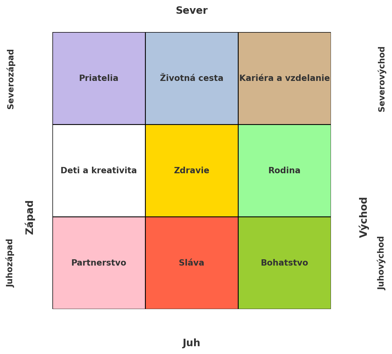 Pri plánovaní bytu podľa feng shui je dobré rozdeliť priestor podľa životných oblastí (bohatstvo, zdravie, láska, kariéra atď.). Keď viete, kde sa jednotlivé oblasti vášho života nachádzajú v byte, môžete ich cielene posilniť správnymi prvkami, farbami a dekoráciami.