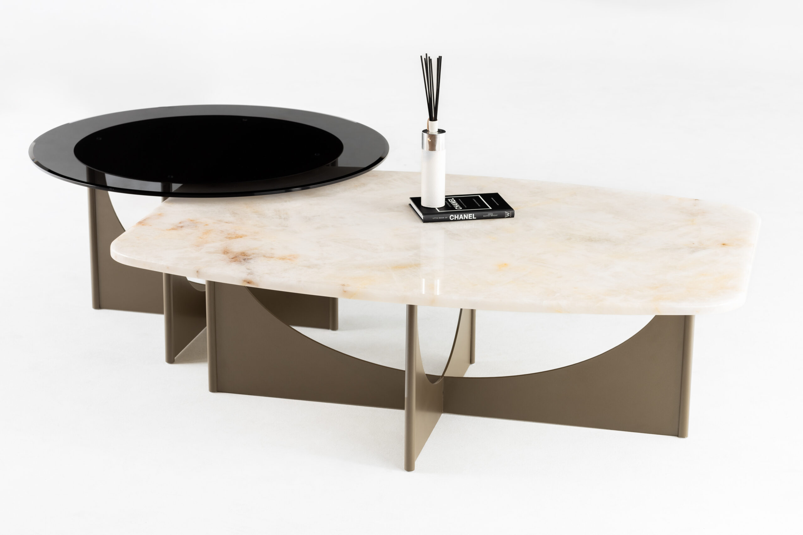 Naše podnože sú navrhnuté tak, aby sa dali prispôsobiť akémukoľvek materiálu stolovej dosky, vrátane skla, drevotriesky, MDF, kameňa, keramiky a masívu. Štandardne sú podnože pripravené na uchytenie dreva alebo drevotriesky. Pre sklenené dosky používame špeciálne nerezové konzolky. Pri kameňoch a keramike riešime uchytenie pomocou oporného rámu na mieru, ktorý obopína celý obvod dosky, aby sme zabezpečili pevné a stabilné uchytenie.