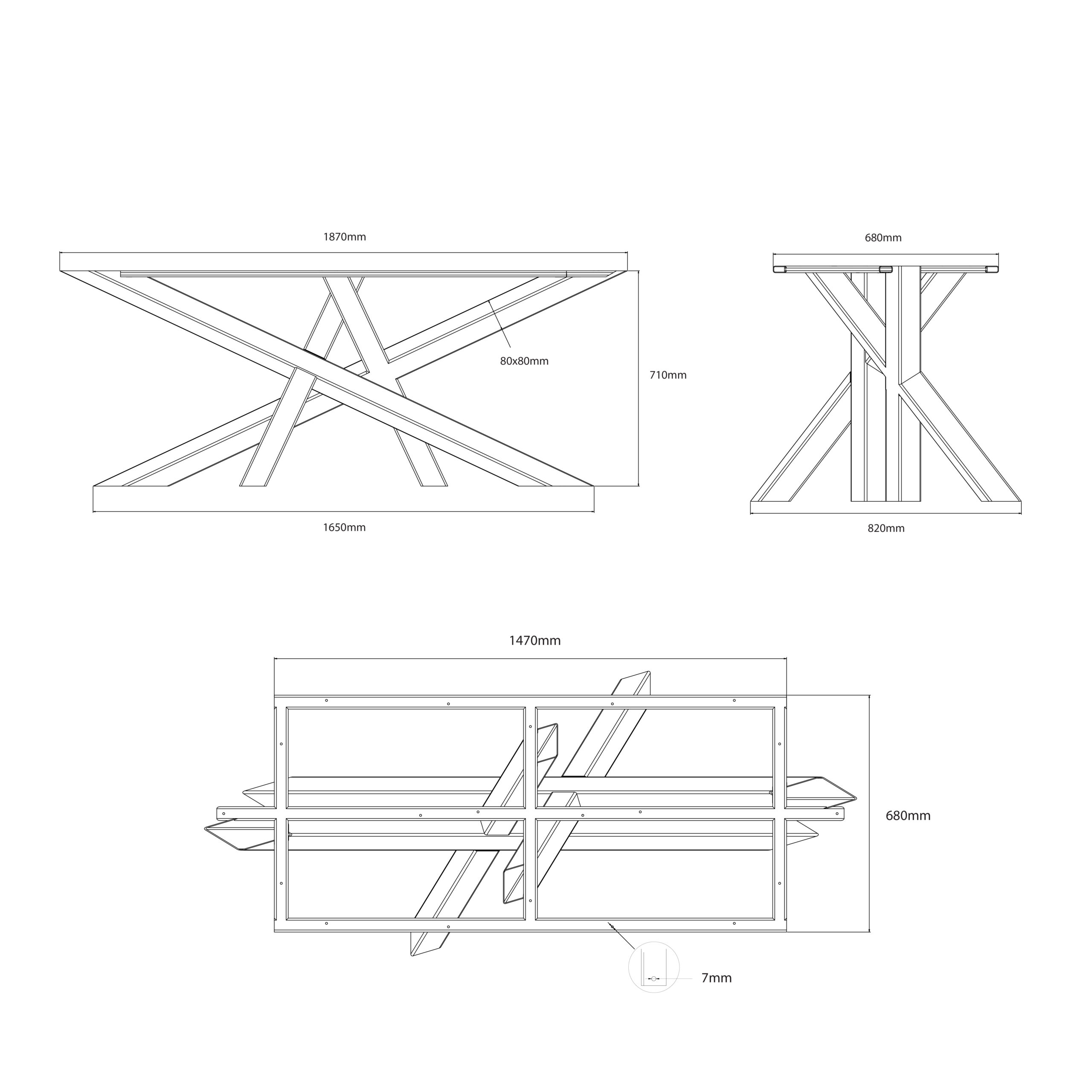 Unikátny dizajn značky BAMYCA. Podnož „MOSAYK BIG“ prináša do vášho interiéru moderný štýl s dôrazom na stabilitu. Hrubé kovové nohy v tvare X, ktoré sa vzájomne prepletajú, vytvárajú dynamický vizuálny efekt. Ideálna voľba pre dlhšie obdĺžnikové dosky, ktoré podčiarkujú eleganciu a pevnosť celého dizajnového stola.