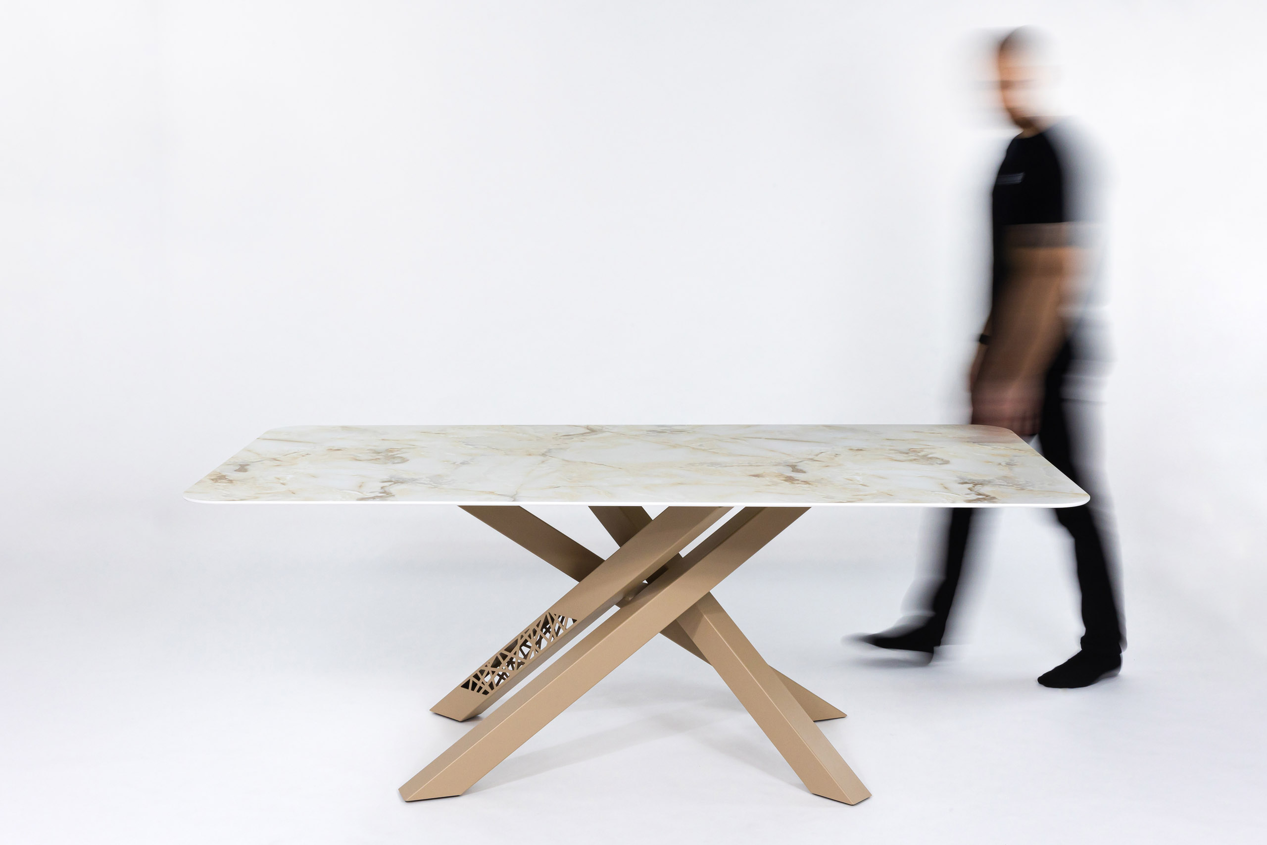 Podnož „MYCADO BAMYCA“ vyniká masívnou oceľovou konštrukciou, ktorá ponúka dokonalú kombináciu pevnosti a elegancie. Dynamicky prepletené profly vytvárajú unikátny vizuálny efekt, zatiaľ čo precízne spracované výrezy dodávajú dizajnu jedinečný charakter.
