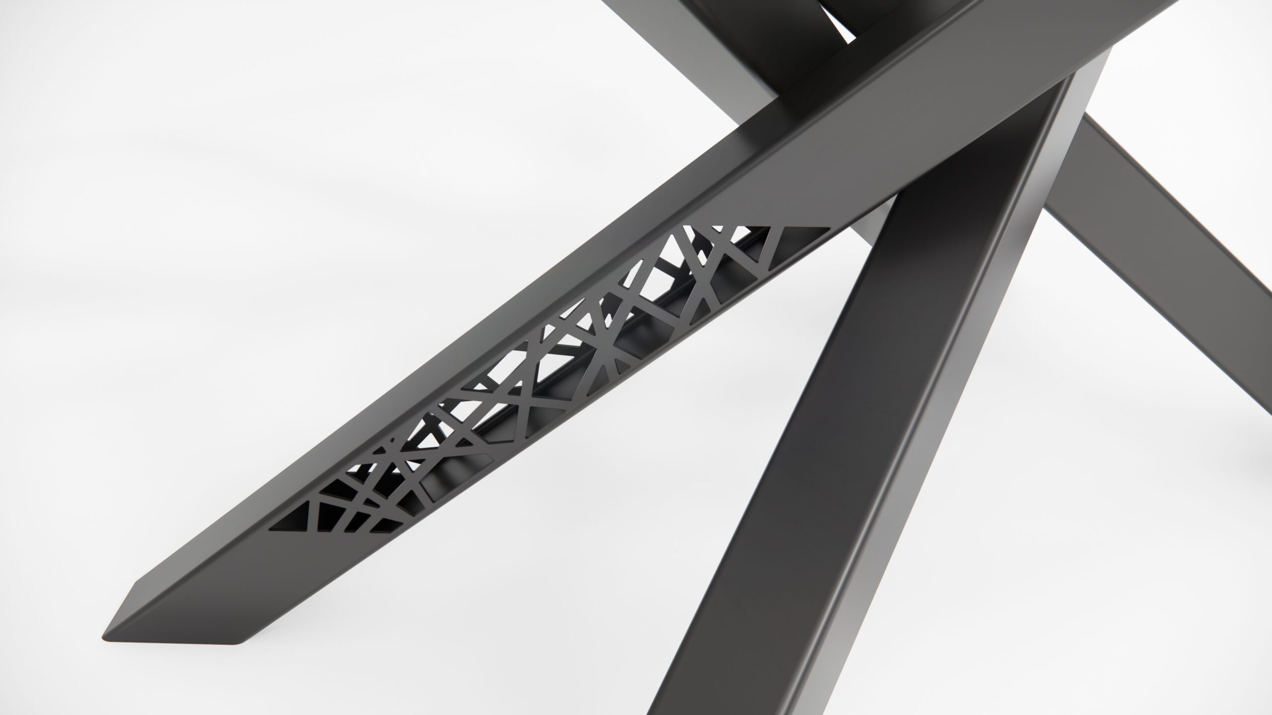 Podnož „MYCADO BAMYCA“ vyniká masívnou oceľovou konštrukciou, ktorá ponúka dokonalú kombináciu pevnosti a elegancie. Dynamicky prepletené profly vytvárajú unikátny vizuálny efekt, zatiaľ čo precízne spracované výrezy dodávajú dizajnu jedinečný charakter.