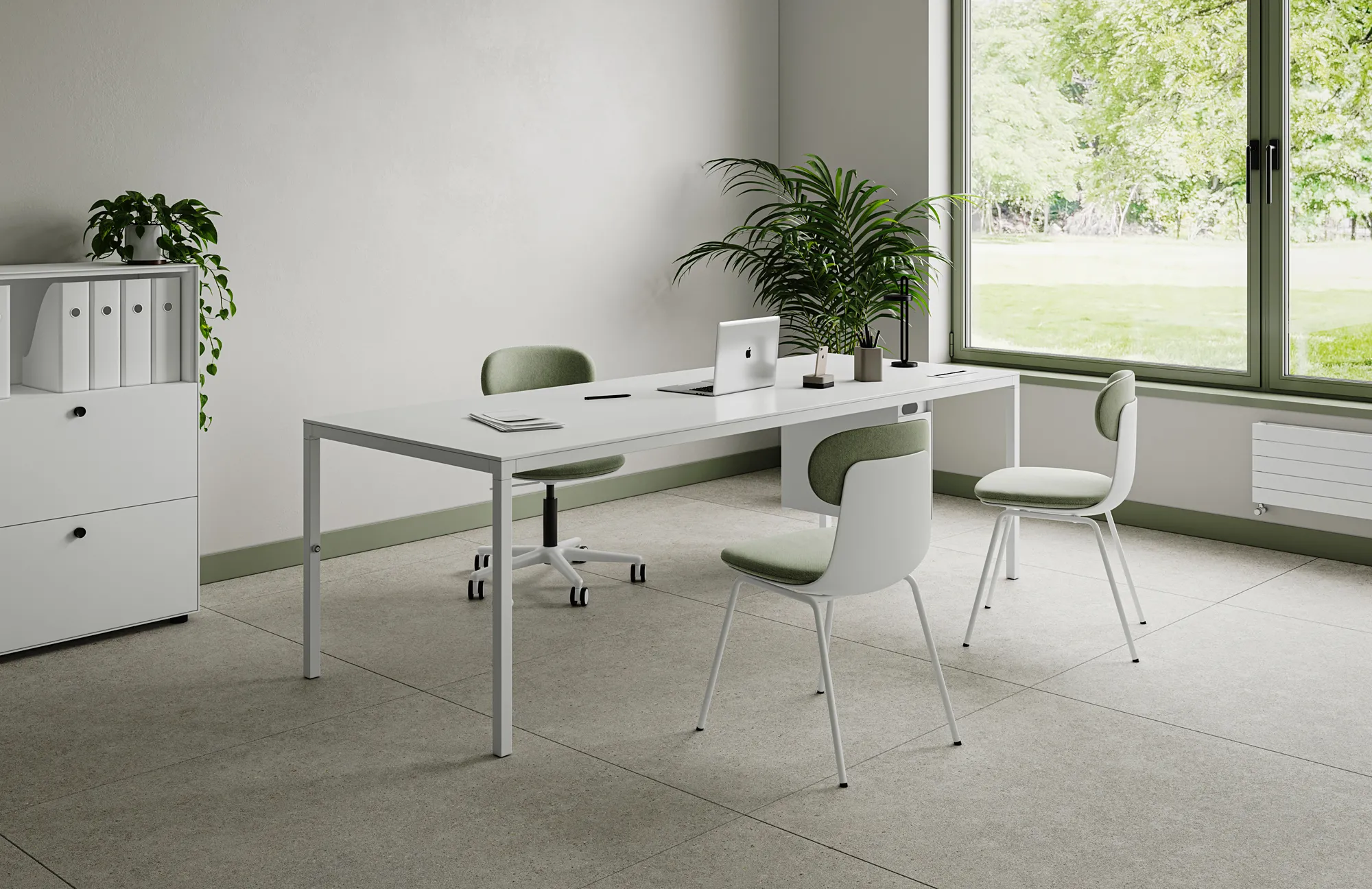 Zoe prináša všestrannosť pre domáce kancelárie, coworkingové priestory aj konferenčné miestnosti. Séria zahŕňa vysoké otočné stoličky a stabilné modely so 4 alebo 5 nohami, pričom ku každému variantu je možné pridať podrúčky. Čalúnené sedadlá a operadlá zabezpečujú pohodlie aj pri kratšom sedení, zatiaľ čo plastové časti sú dostupné v troch neutrálnych farbách, ktoré doplnia estetiku vášho priestoru.